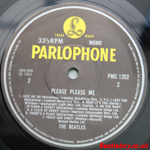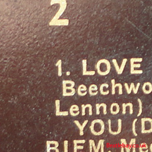 1st Press - type 2a. For some reason during this very small run, Side 2 was changed slightly. This is easy to spot as the first line has been stretched, so "1.Love Me Do" starts BEFORE "Beechwood" below it. Strange that no one has noticed this before! :)