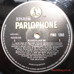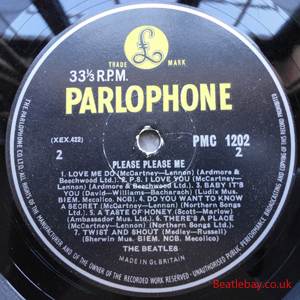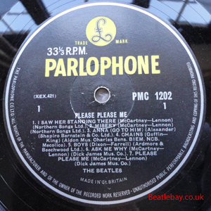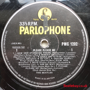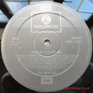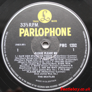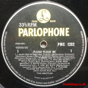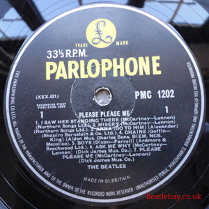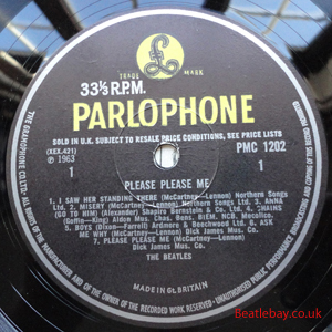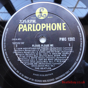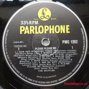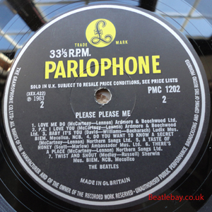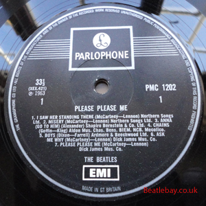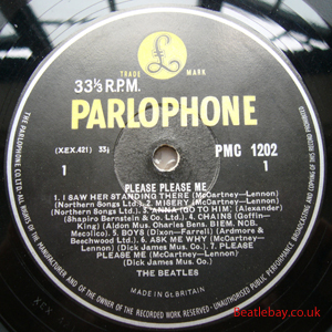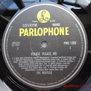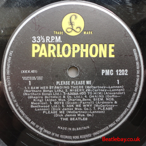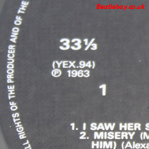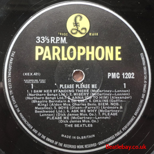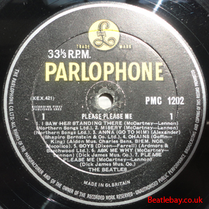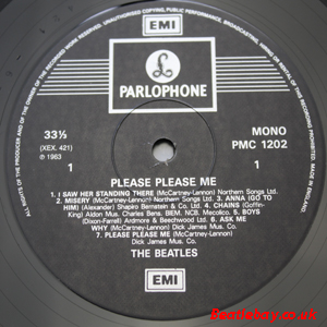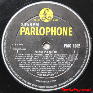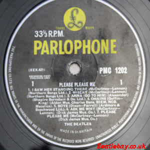 2nd Press - type 1. "Northern Songs" Gold Parlophone Label. The publishing Credits for "I Saw Her Standing There, Misery, Do You Want to know a Secret, & There's a Place" are now credited to "Northern Songs", the brand new company formed to deal with the Lennon-McCartney writing partnership. The other 4 Lennon & McCartney Songs (the first 2 Singles) remained with Dick James Mus Co. |