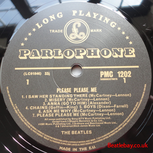13th Press In 2014 EMI decided to re-release and remaster the original mono albums using just (updated) analogue equipment and release as a vinyl box set. These are the labels for the Please Please Me Lp in that series. |