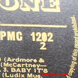 This Side 2 label was from a 2nd Press (Northern) Side 1 crossover, so is confirmed as the last showing of the "Dick James" label. It is very common to see cross over copies with and without the 3/4 or sometimes very light full outer-dented ring which is not to be confused with the ultra rare "1H/1H Ridged type" early pressings up top!.