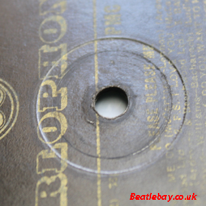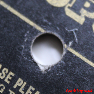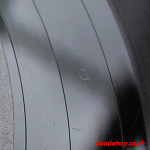 As can be seen (& felt), there is a definite ring / ridge which is consistent all the way round & on both sides - (this differs from the 3/4 ring you occasionally see on any one side (1 or 2) on type 1c & type 2b below). Actually there were two runs of this early label, one of which had the earliest Beatle Tax Code known - "WOZT" in the centre near the spindle hole shown here on side 1. |
