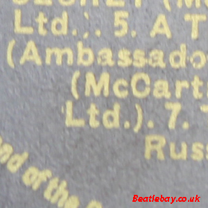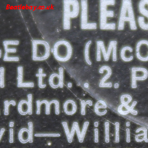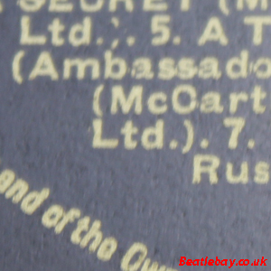 The difference here is so slight it has pretty much gone unnoticed and may well passed unnoticed but the text spacing on the 10th line of the side 2 label here has been stretched just a bit - LTD below (McCart !