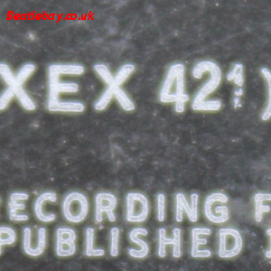 12th Press - type 2a. Same typeset as type 1 above but printed on a different textured label AND more importantly, with an indented Ring that doesn't appear on any stereo equivalent.. (Perhaps stereo had been discontinued by now), the XEX 421 / XEX422 has now been corrected on the labels as per above. |
