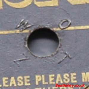 Another hard one to catch as only came out for what looks like a couple of single runs or at least until I find a 1,5 RHH / 6 GR press.. Both this and the rimmed version above have the extra Dot on the sold in the UK statement on side 1, so please keep a lookout for Non Dotted Uk Statement copies!. Again two versions of this (side 2, difference between the 1 & 2 for comparison). |